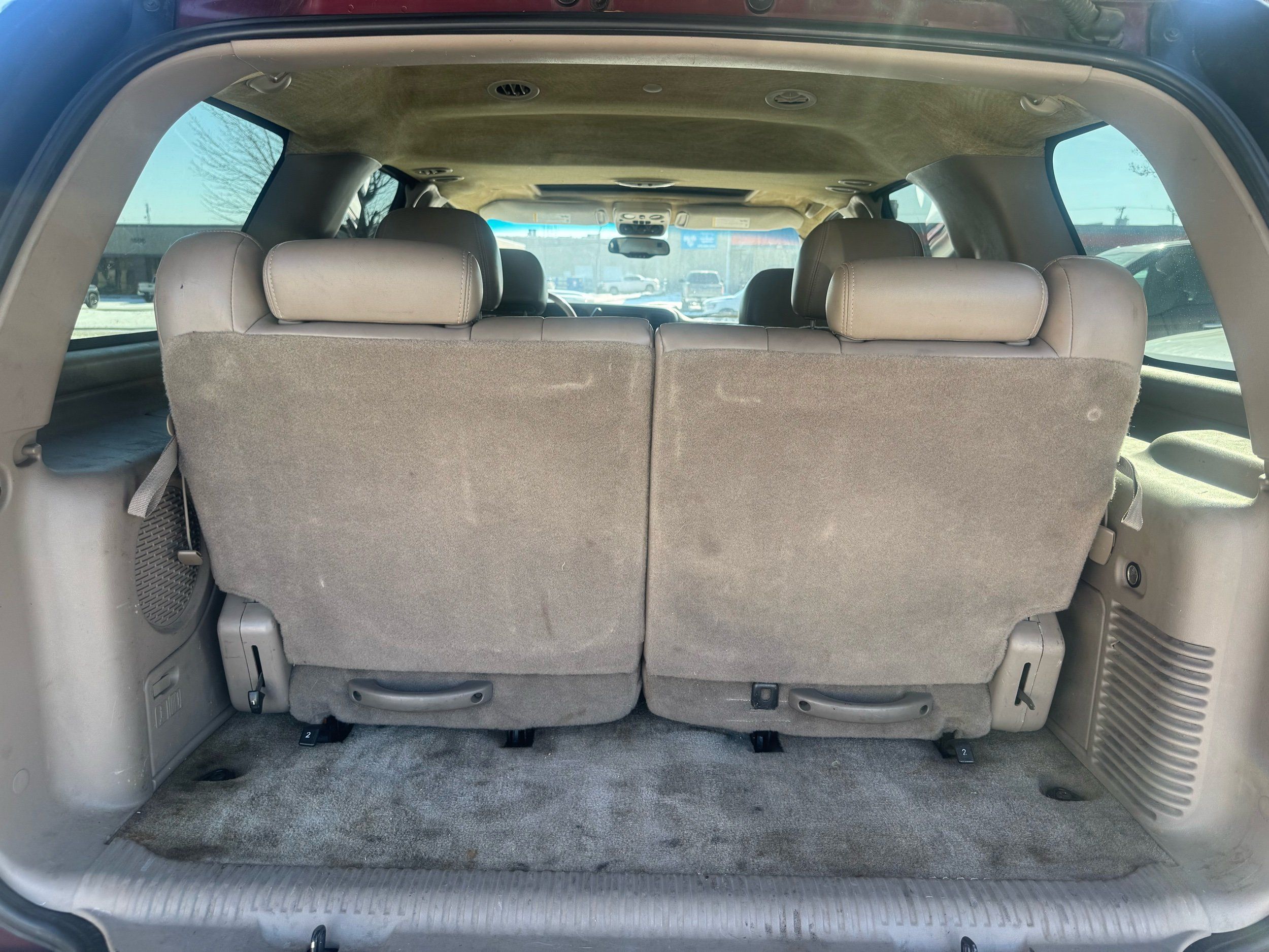Third-row seatback upholstery: Carpet third-row seatback upholstery