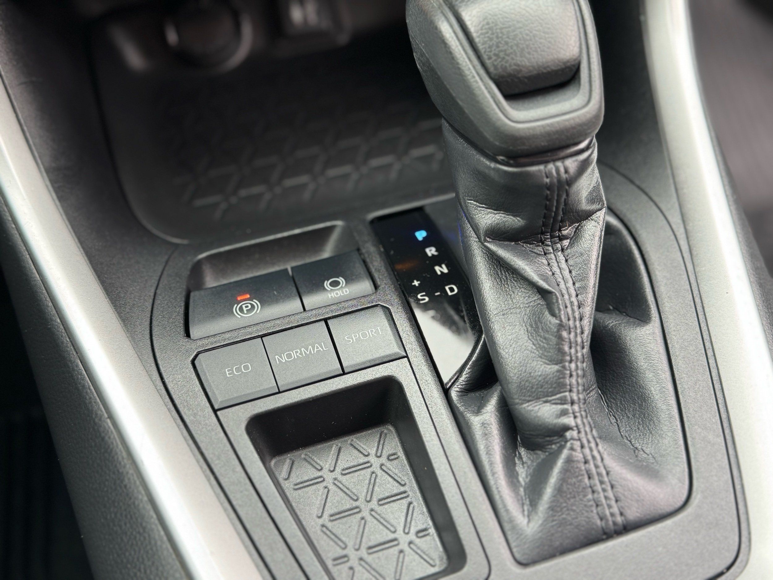 Floor console storage: Covered floor console storage